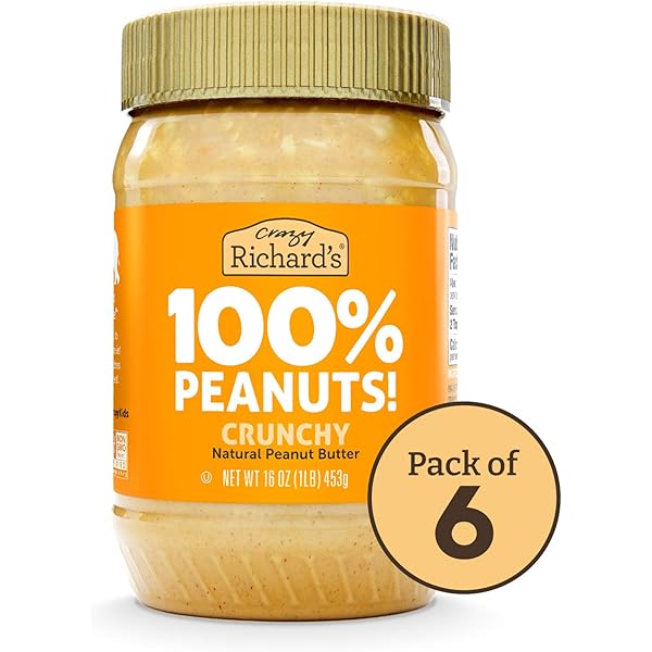 Amazon Com Crazy Richard S 100 All Natural Crunchy Peanut Butter No Added Sugar Peanut Butter Non Gmo Vegan 1 Pound Pack Of 6 Grocery Gourmet Food